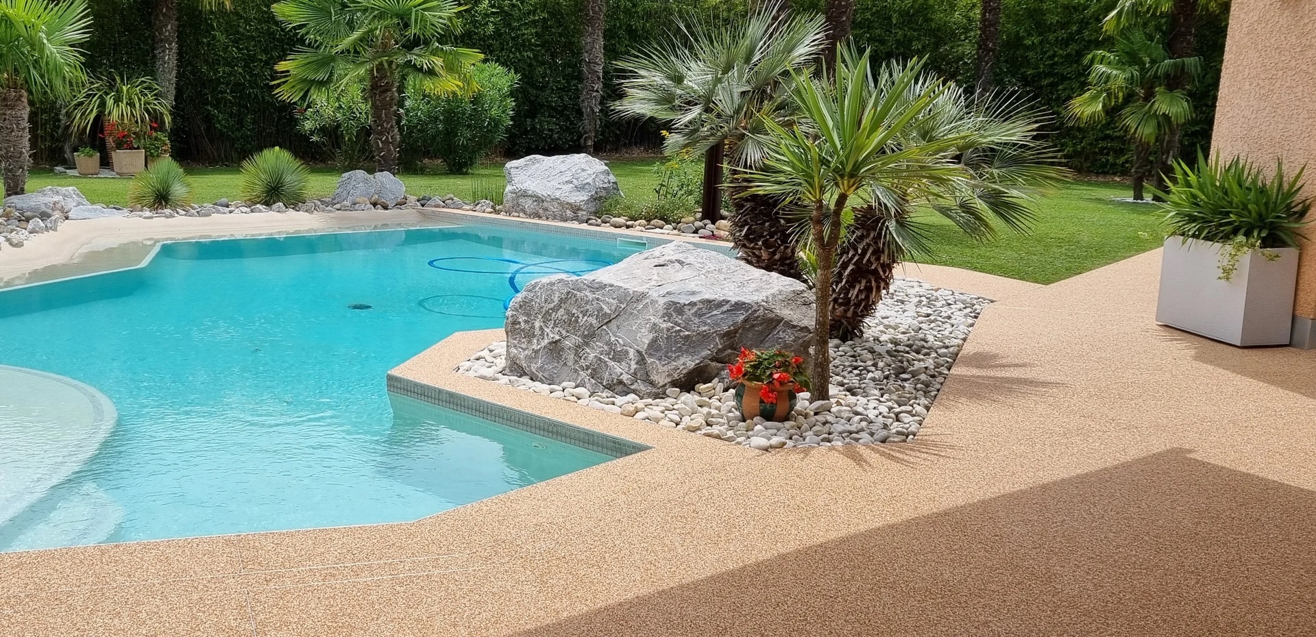 Surface antidérapante et perméable, idéale pour les abords de bassin.
